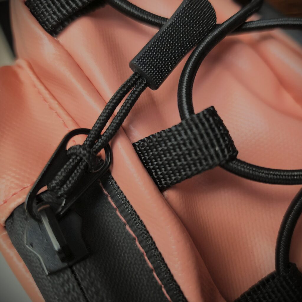 - Lateral con ajuste elástico para llevar toalla u otros objetos